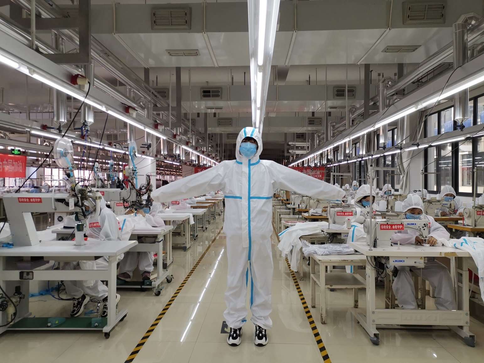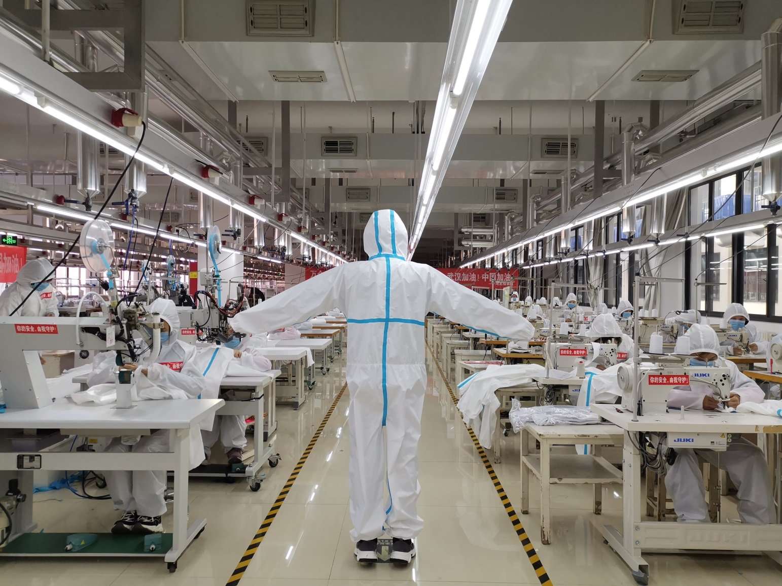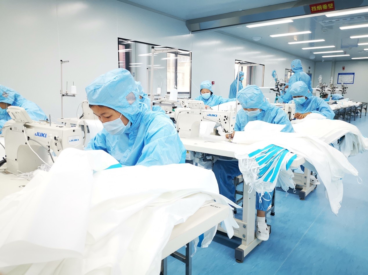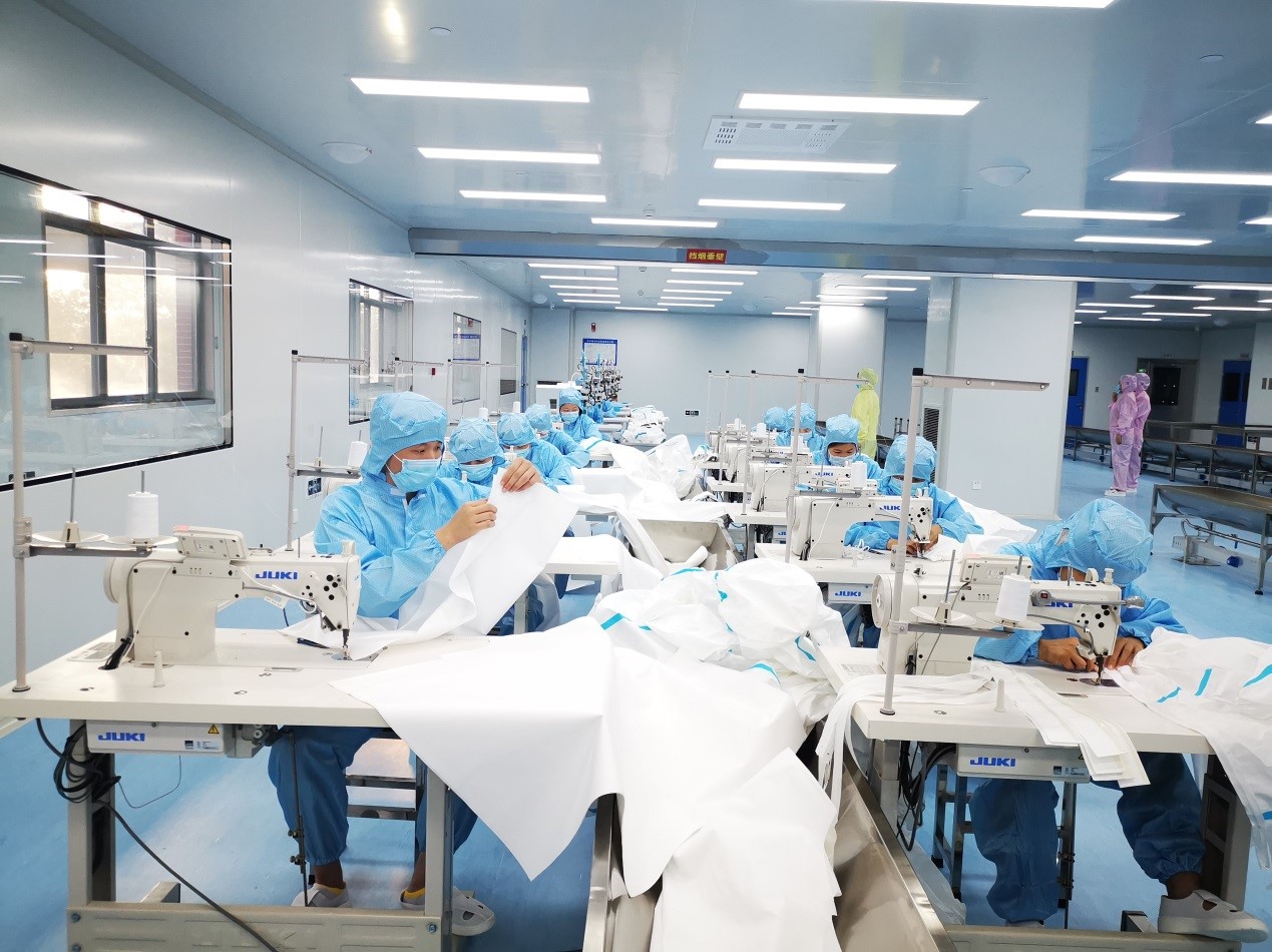 202077日,120010萬級潔凈車間開放投產。當天早上6:00,第一臺用于防護服生產機器進入無菌車間,經過基礎調試后,車間開始了緊張的生產,12分鐘后,第一件防護服正式下線。