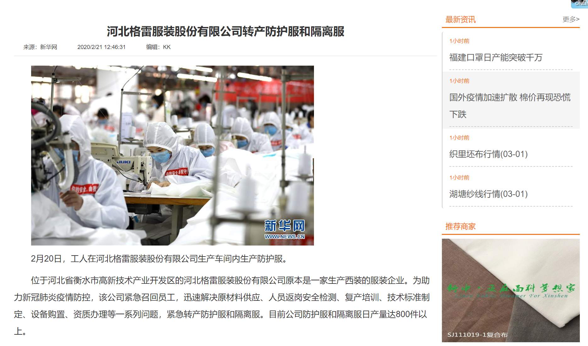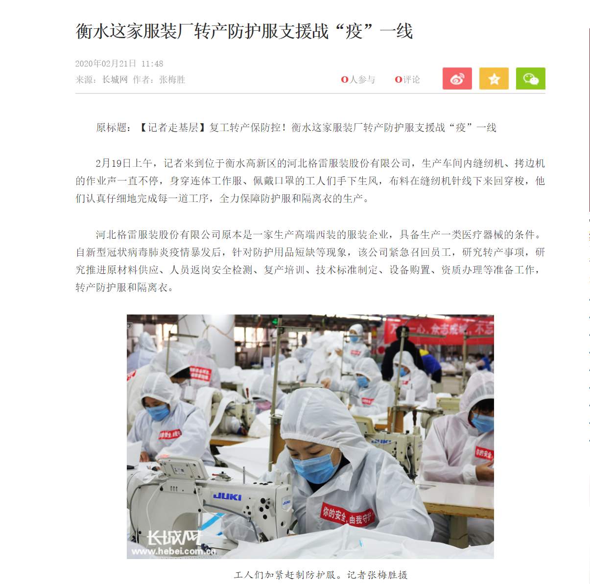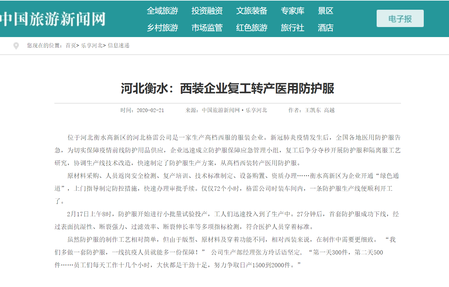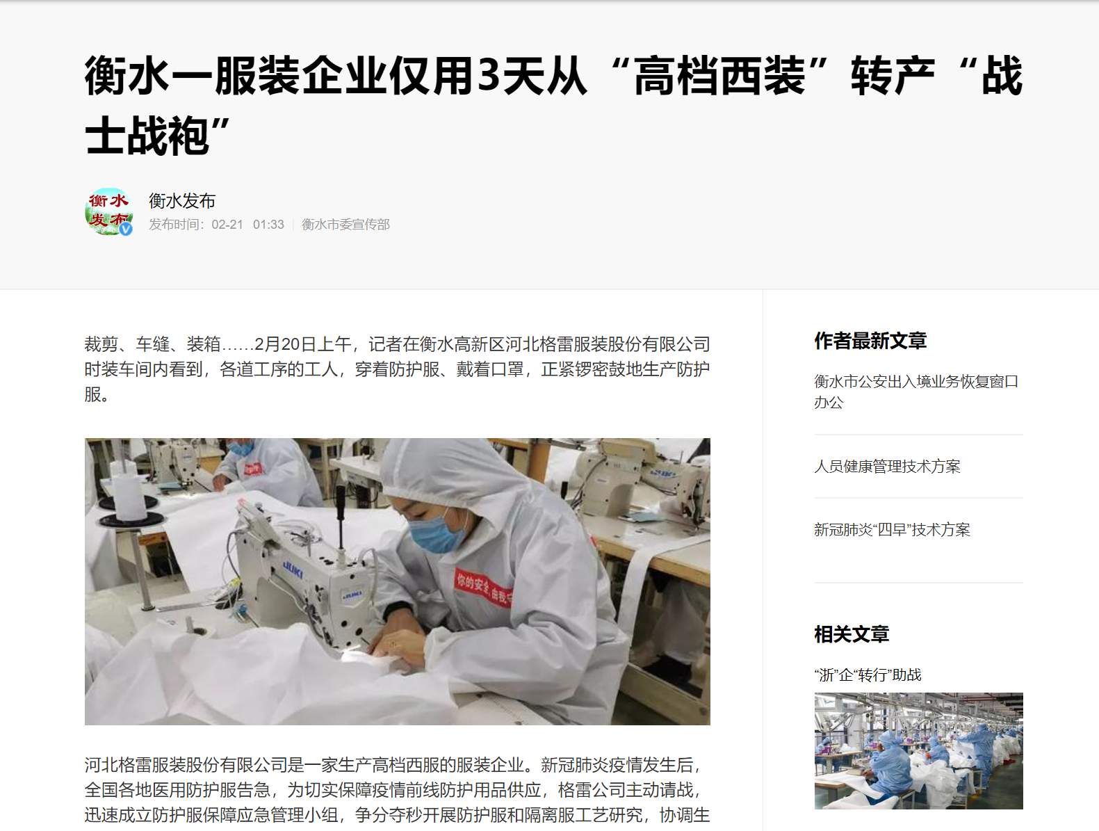 近日,河北格雷轉產抗疫的新聞風靡國內外各大媒體,點擊量累計突破百萬。大家對河北格雷逆行而上的勇氣和責任擔當給予了高度評價。
