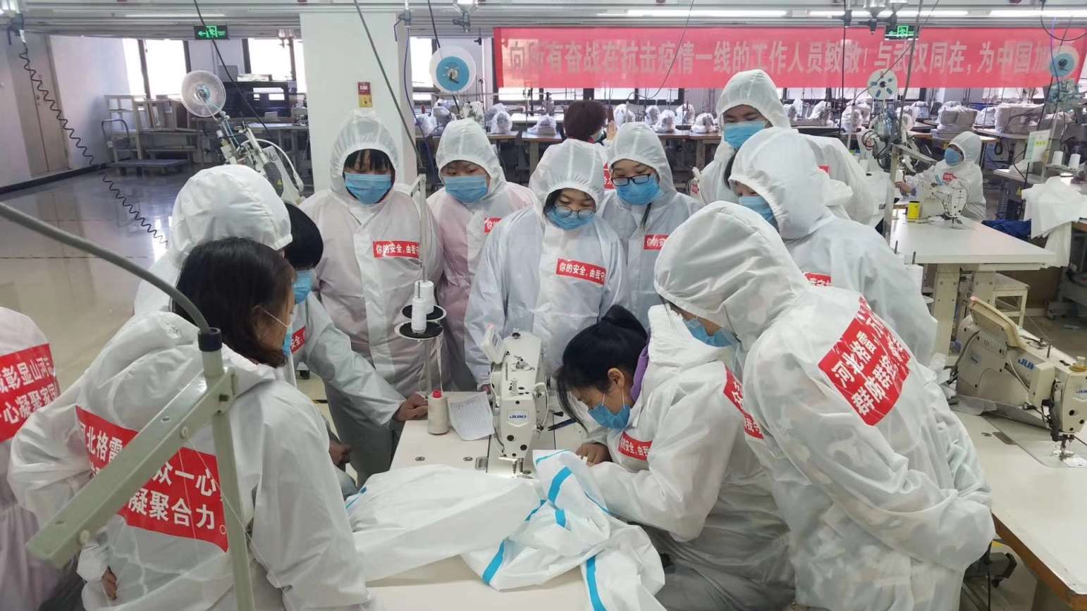 員工在接到生產任務后,絲毫沒有退縮,紛紛表示愿意為疫情出一份力,生產現場,面對并不熟悉的防護服,每個人都學得很認真,生怕錯過一個工藝點。全員齊心協力,快速完成了人員、機器、原材料的各項準備工作。