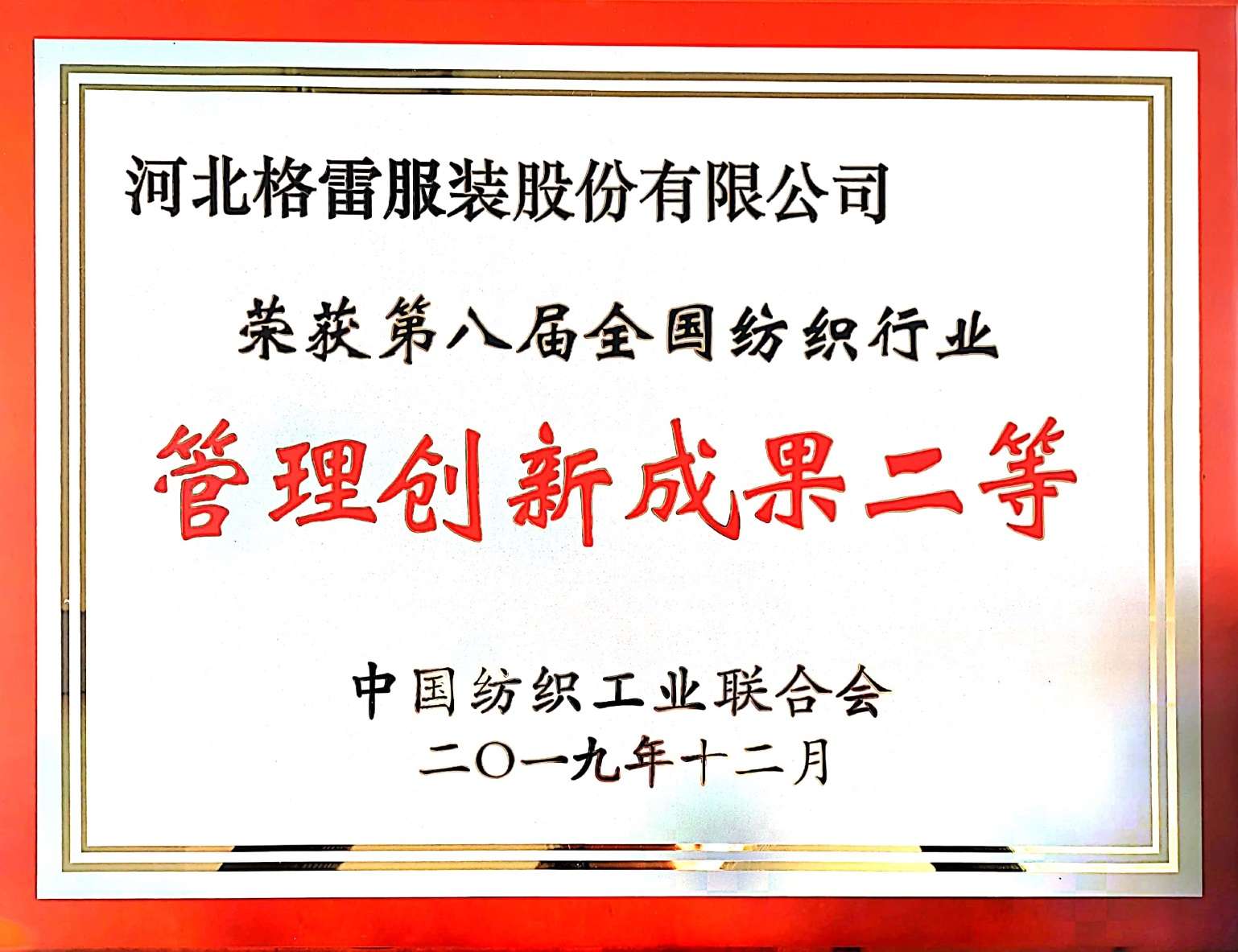 河北格雷榮獲“第八屆全國紡織行業管理創新成果二等獎”