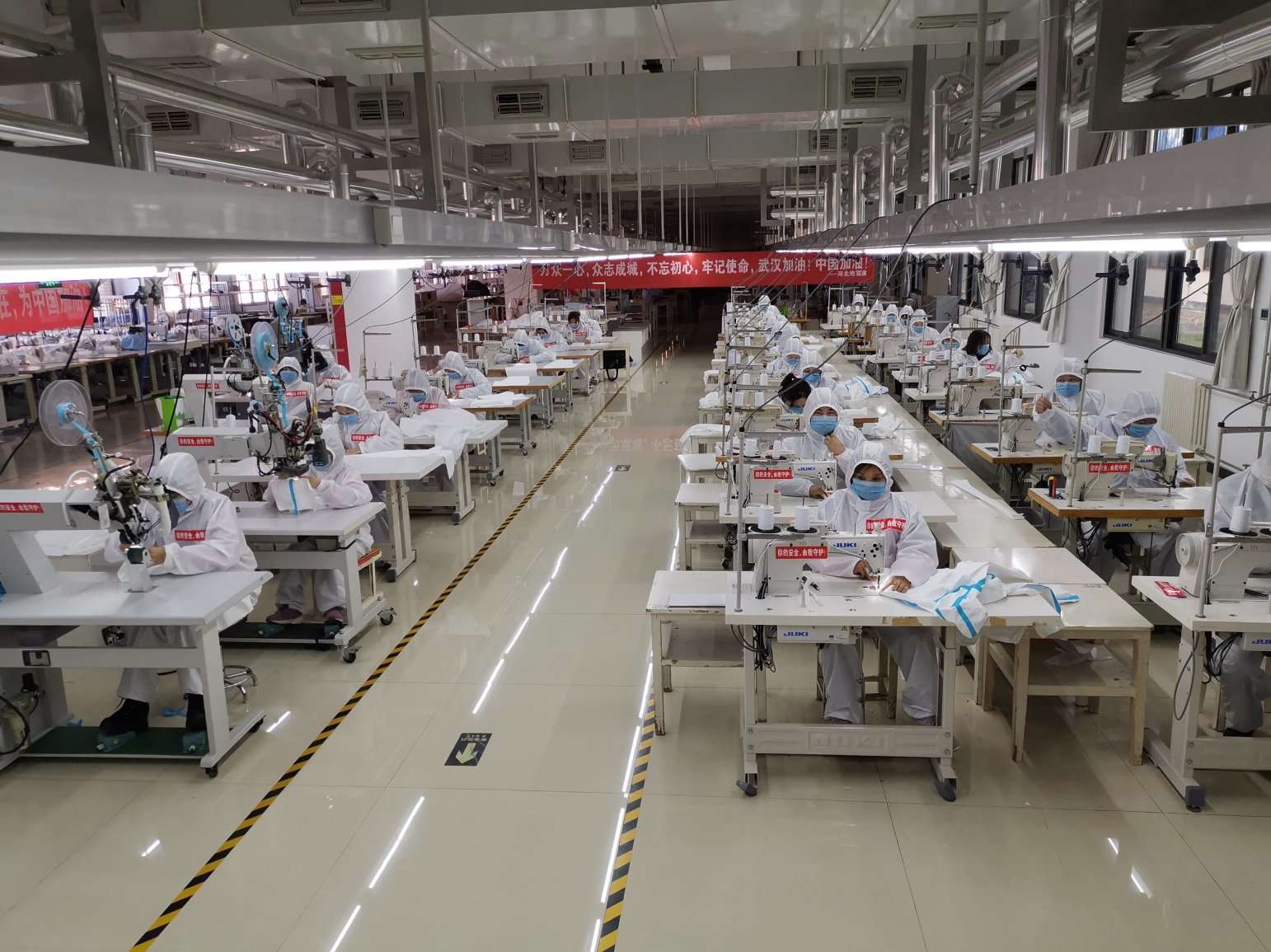 目前,生產“突擊隊”人員、防護服原材料已全部到位,車間內專用機器、設備也均已調試完畢, 2月17日上午8:00,防護服開始進行小批量試驗投產, “突擊隊”的隊員們快速投入到了生產戰斗中,27分鐘后,河北格雷首套防護服成功下線,每天日常量能夠達到2000件。